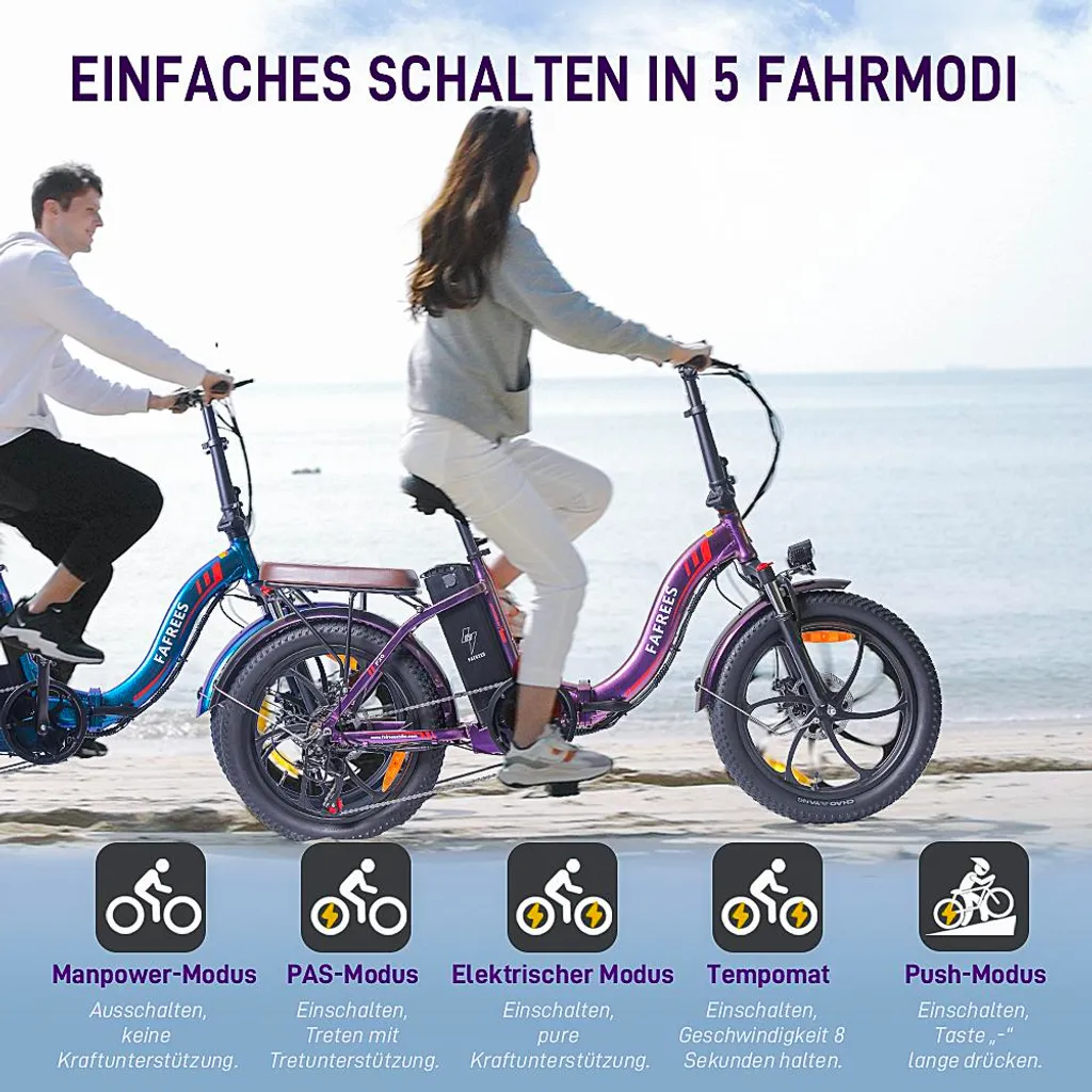 Dieses E-Bike ist ein echtes Platzwunder! Mit seinem tragbaren Faltdesign (nur 88 x 38 x 70 cm zusammengeklappt) passt es problemlos in den Kofferraum. Gefertigt aus rostfreiem Aluminiumlegierungsmaterial ist es nicht nur leicht (nur 25,5 kg), sondern auch extrem langlebig und kann bis zu 150 kg tragen. 💪