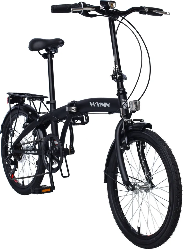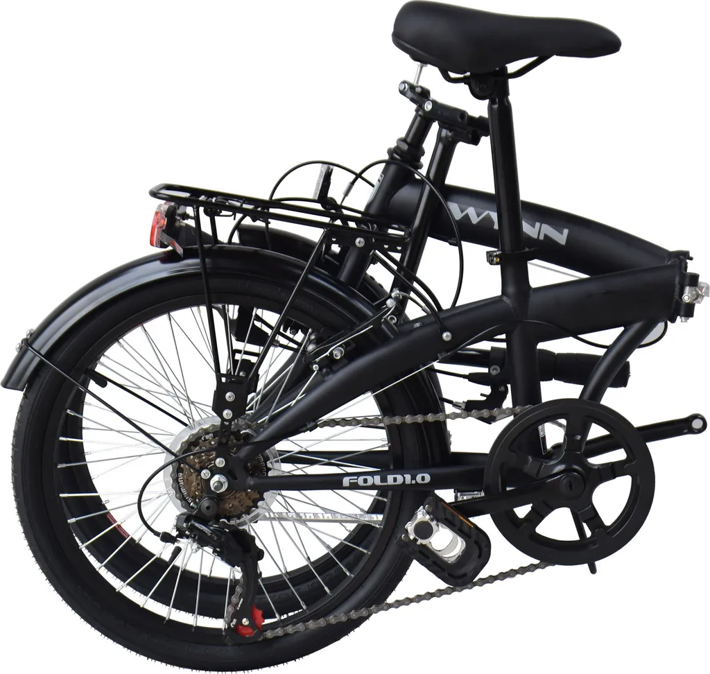 WYNN Faltrad 20 Zoll FOLD1.0 schwarz Rahmenhöhe 27 cm Damen Herren Klapprad 6 Gänge V-Brake